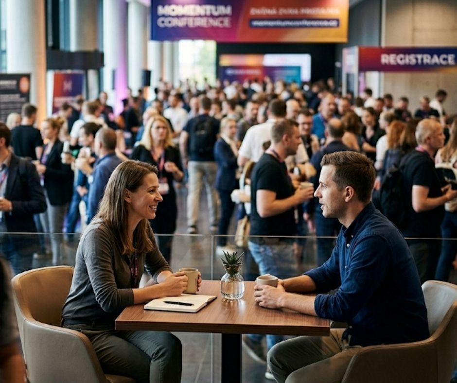 Kvalita nad kvantitu: Zapomeňte na cíl nasbírat 50 vizitek. Váš cíl jsou 3 kvalitní konverzace. Pokud z konference odejdete se třemi lidmi, se kterými jste si skutečně lidsky i profesně sedli, vyhráli jste víc než ten, kdo rozdal balík letáků.